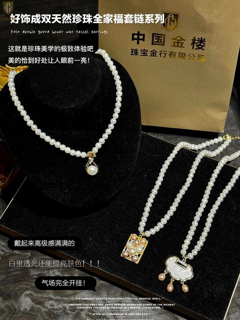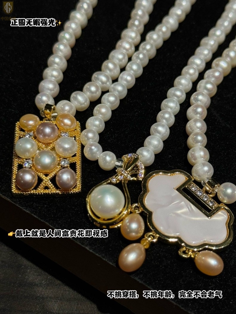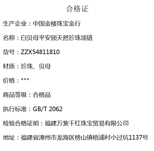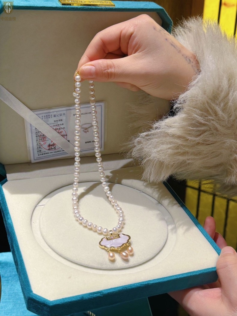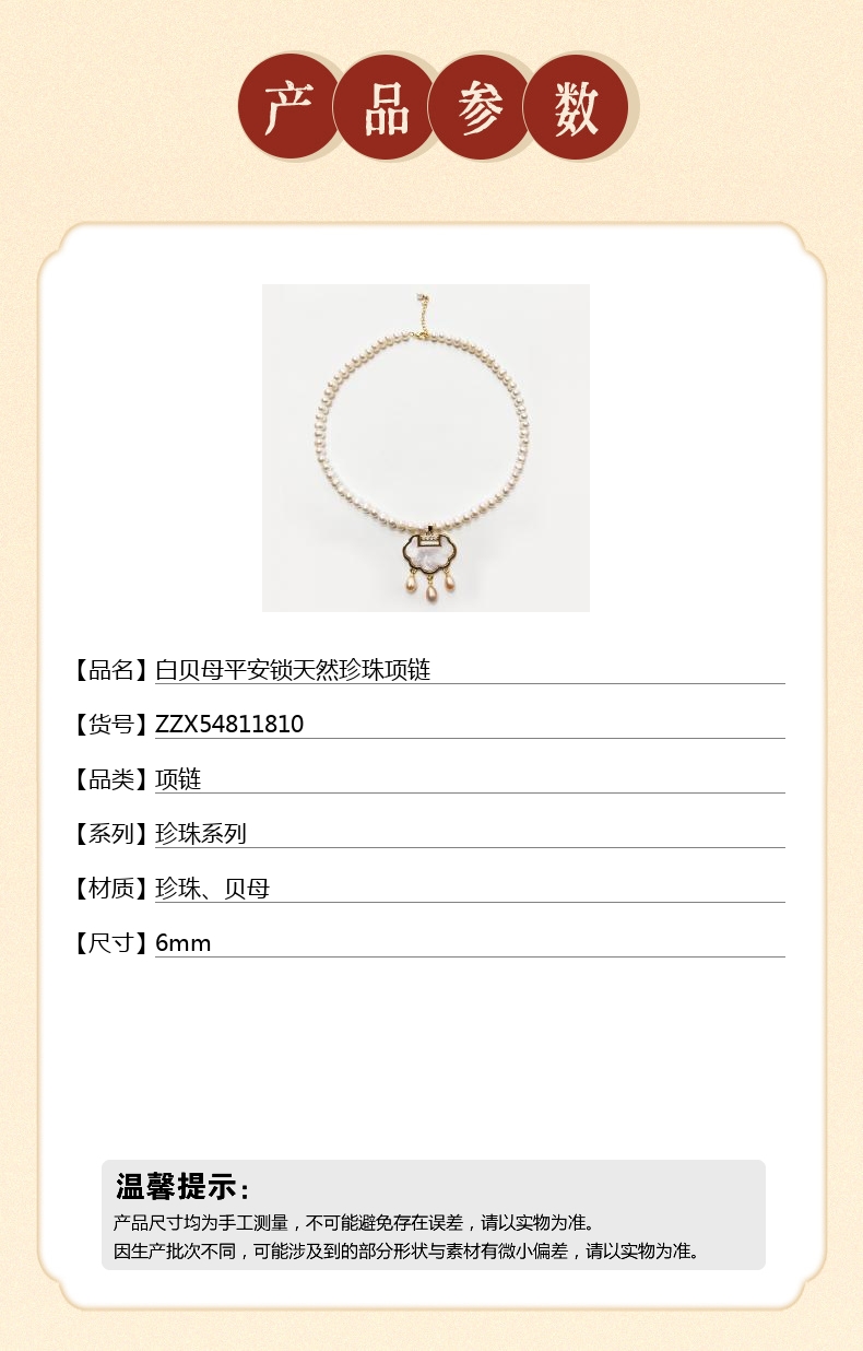 【品名】中国金楼白贝母平安锁天然珍珠项链