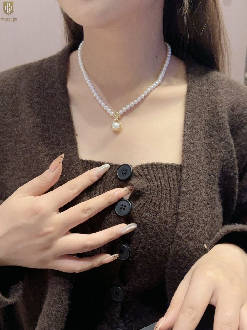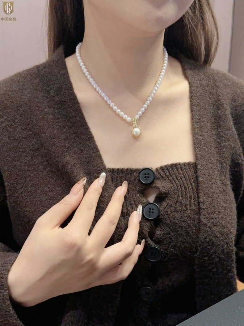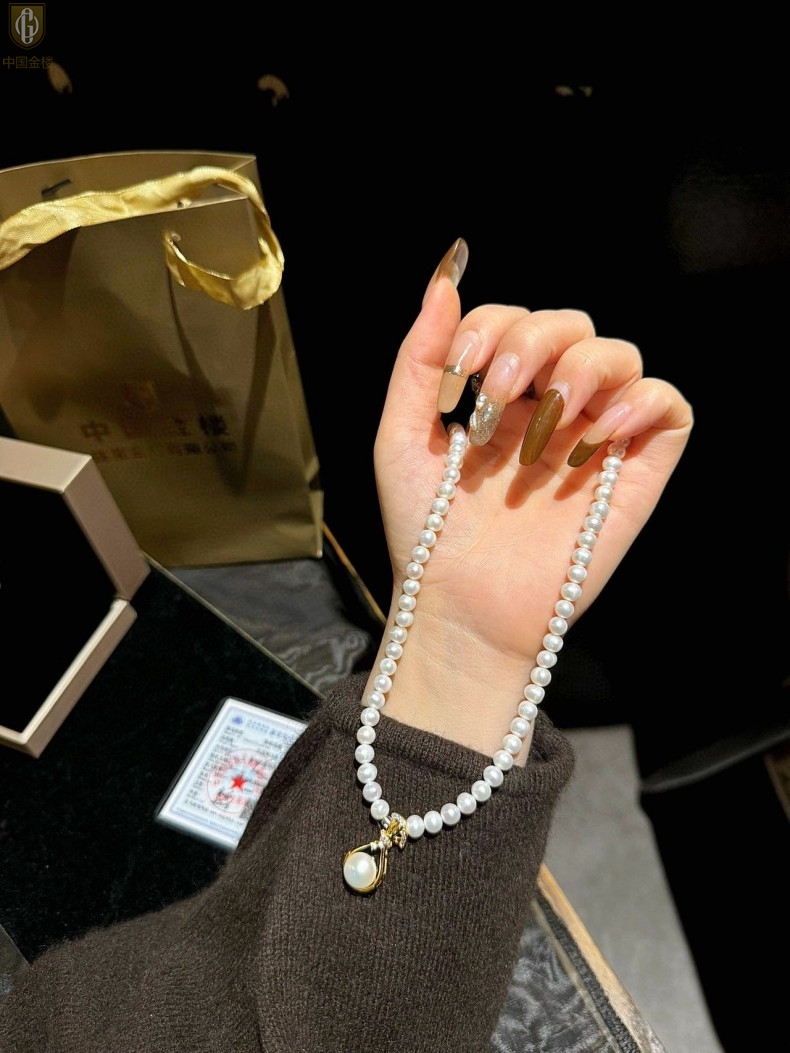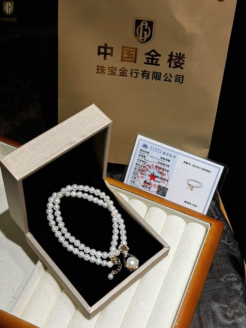 【品名】中国金楼暴富钱袋天然珍珠项链